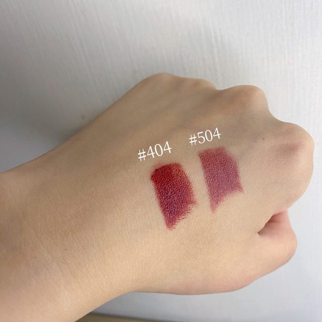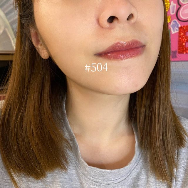 504在官網的顏色我覺得太深,本膏顏色淡擦是帶紫的玫瑰色,真的很美再說一次!!唇