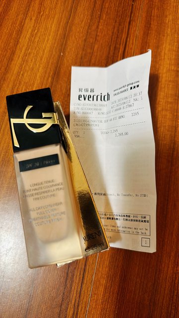 另外YSL新版恆久完美無瑕粉底液,台灣櫃上售價2700台幣,桃園機場免稅售價2295,但