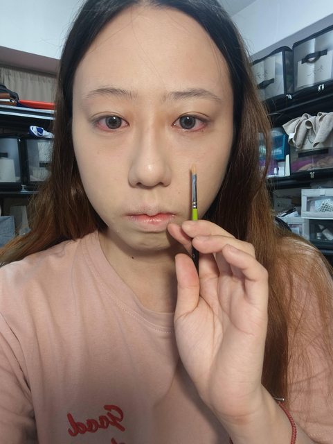 眼幹以為是珊瑚色的