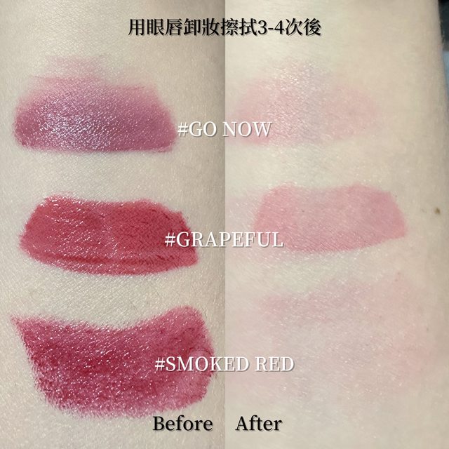 殘留度:Grapeful>Go now>Smoky Red