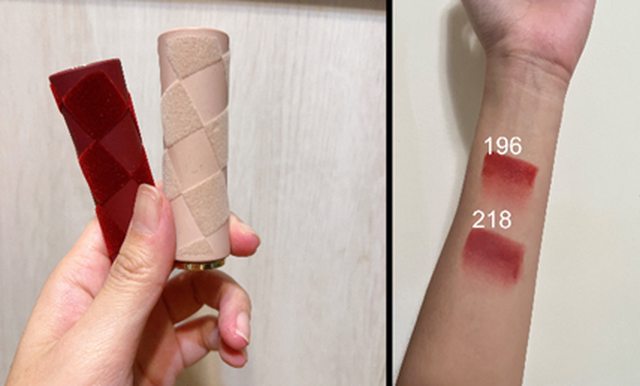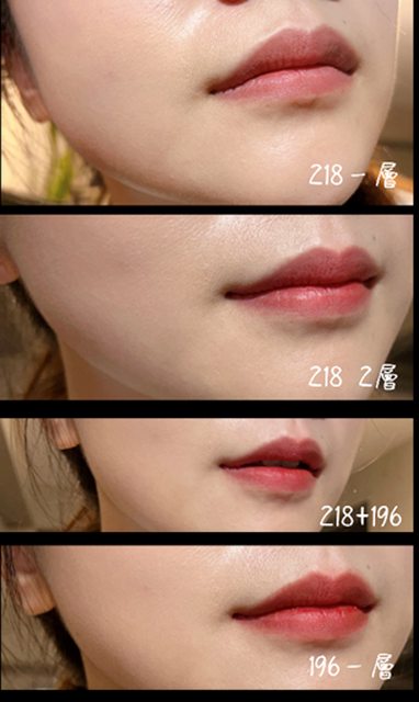 顏色也是很顯色,196偏磚紅,218像乾燥玫瑰