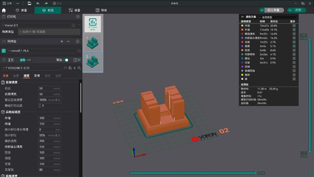 然後我把我的voron0.1調整好了 新的切片參數試驗了三天也配好了