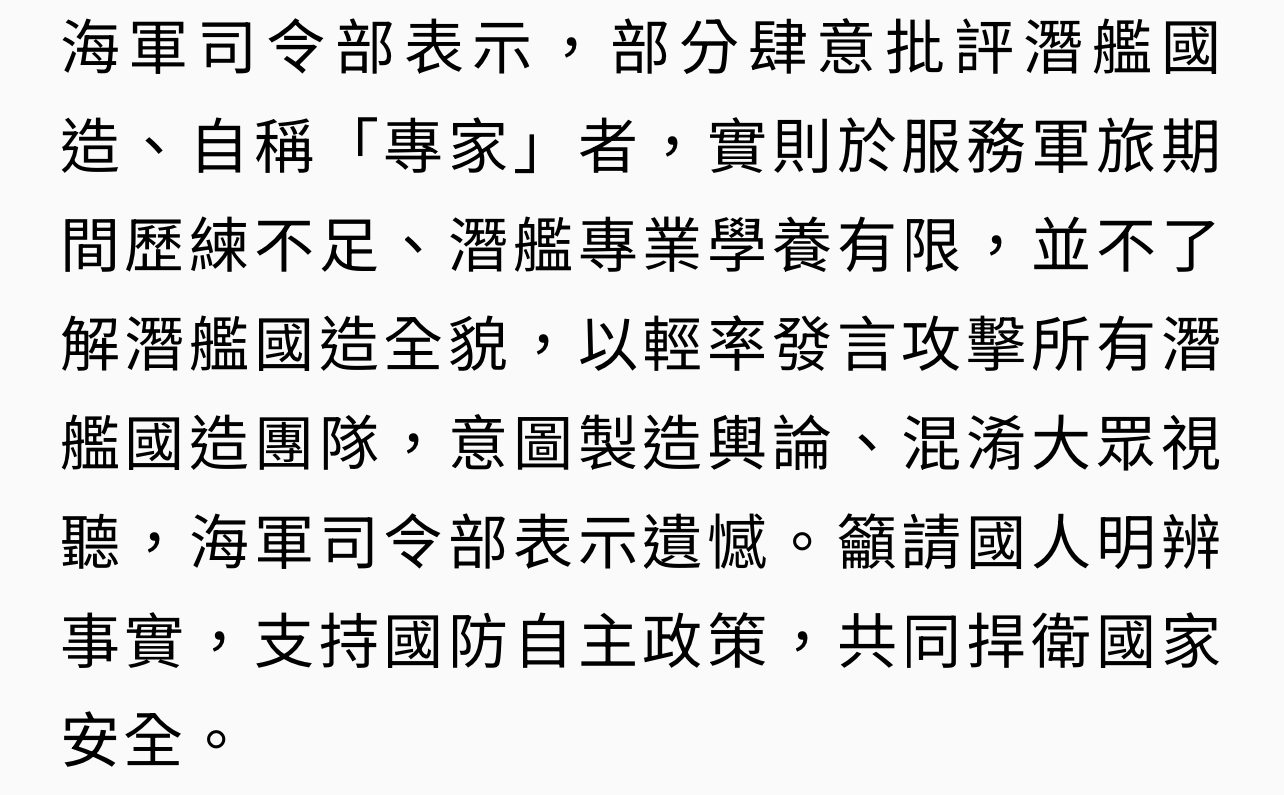推 huijun : 台灣濳艦一下水,馬水多了許多的路人專家,笑死 09/29 16:44