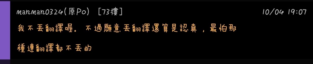 → mmmimi11tw : 你自己講你不丟翻譯的 還是這不是你說的 10/04 21:07
