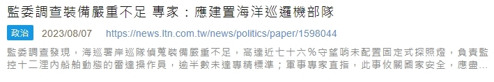 → kkttaipeityy: 想撈海巡生意,插題了 11/20 23:41