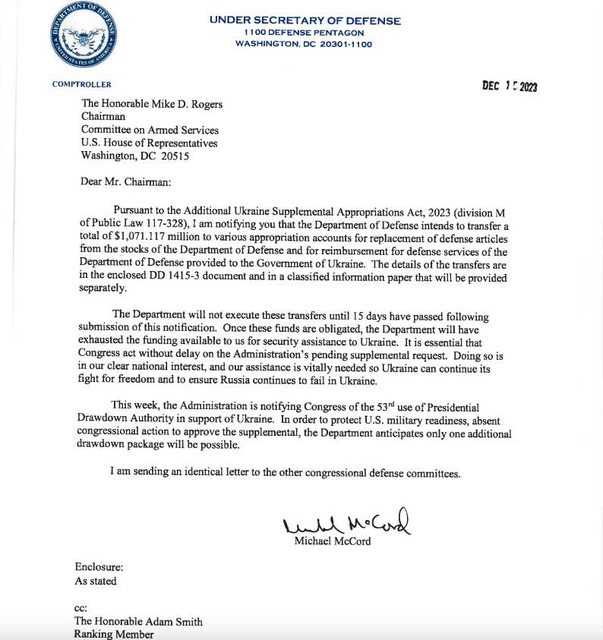 國防部將暫時耗盡美國目前可用於向烏克蘭提供安全援助的資金 https://i.imgur.com/8a9f0rQ.jpg