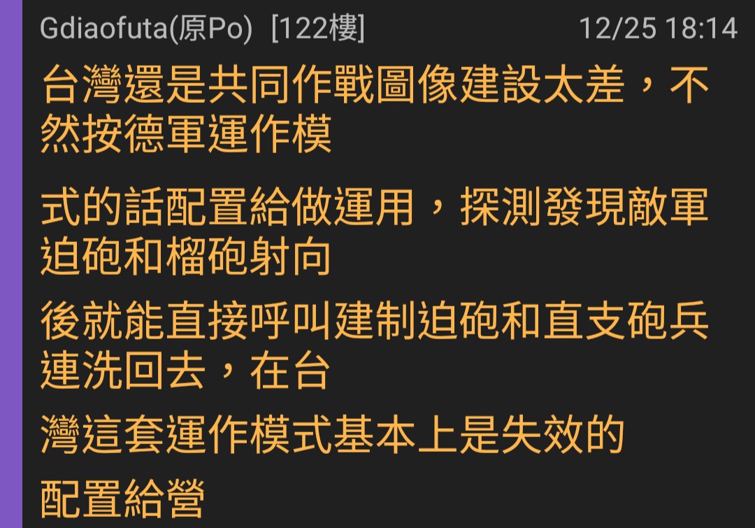 Gdiaofuta : 然後我也說了,反砲兵是基於整合Waffeneinsatzsyst12/25 23:26
