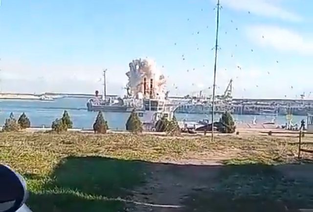 當烏克蘭無人機擊中卡斯皮斯克的目標時,