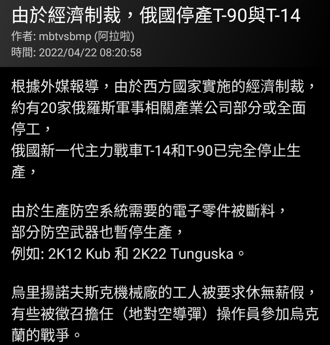 推 dragon159 : 你以為俄國大國打小國不會崩 當初更大的蘇聯打更窮 11/23 10:54