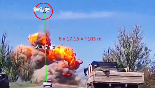 舊紀錄是 T-72在馬里烏波爾的103公尺