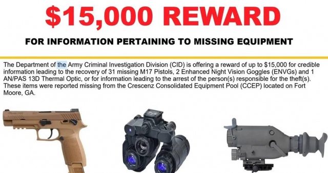 標題:軍事基地31把手槍與夜視鏡遭竊 美軍祭48.6萬獎金求線索