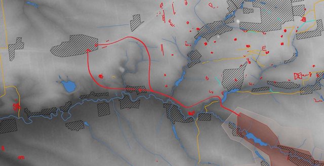另一邊有山丘地形和無法使用重型設備的