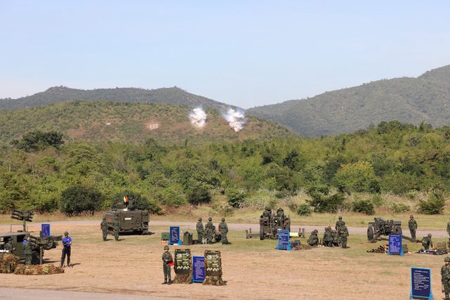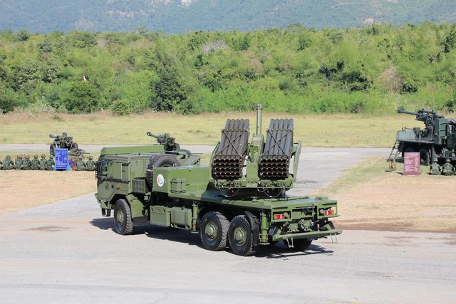 發射管組和火箭零件展覽在Khao Phu Lon砲兵靶場舉行。