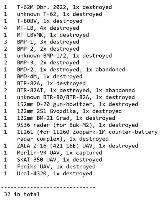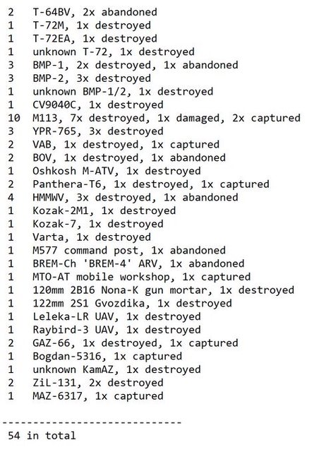 目視確認損失軍事裝備統計 2024.11.30 ~ 12.2