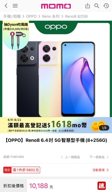 所以一樣考慮Reno8 8/256g或12/256g版本