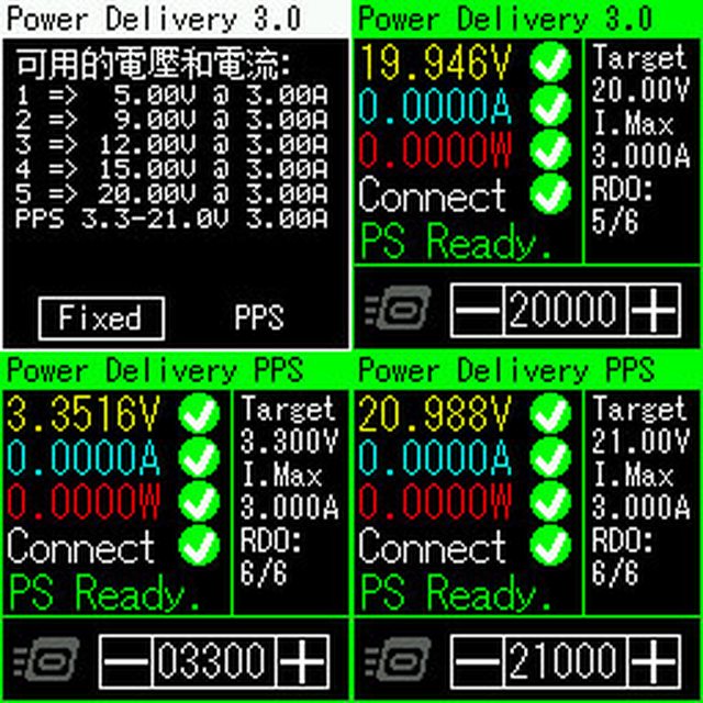 ▼搭配5A線材,固定檔提供5V/3A、9V/3A、12V/3A、15V/3A、20V/3.25A,PPS檔提供