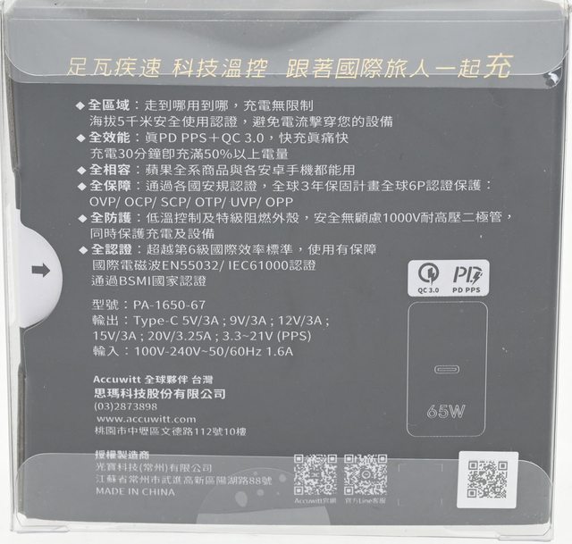 標題[心得] accuwitt高山充65W快速充電器PA-1650-67