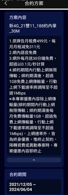 → pda2001 : 底 之後是首約期30個月 不限速吃到飽 約滿剩1Gb後 04/07 14:14