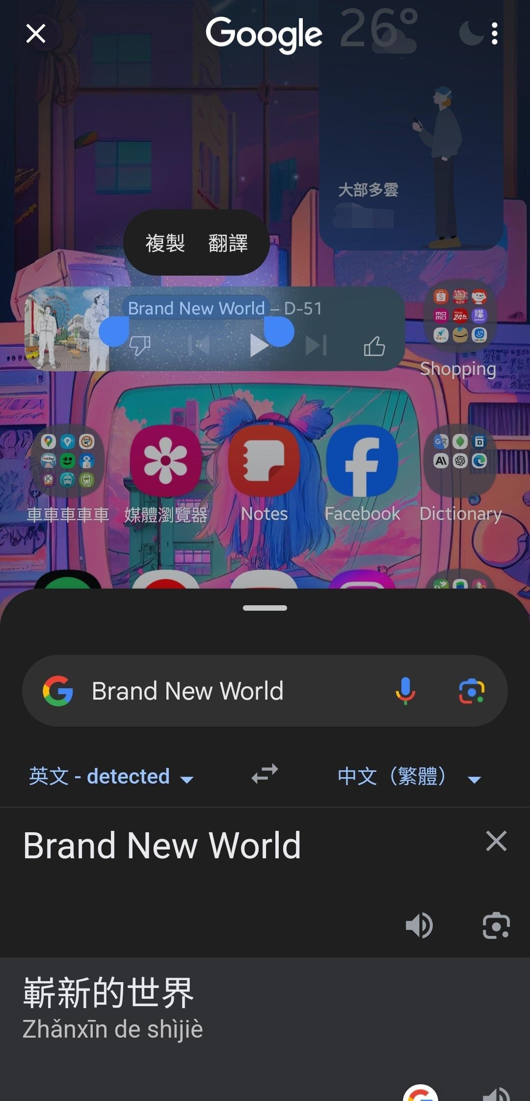 推 EPIRB406 : 用搜尋圈就可以翻譯,長按文字選單裡這個真的沒用過 04/27 12:38