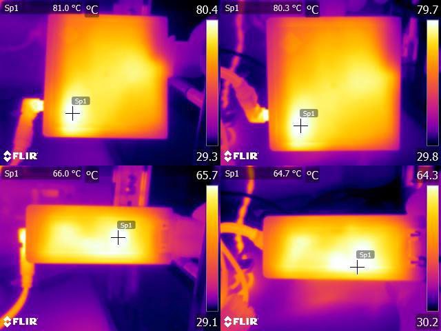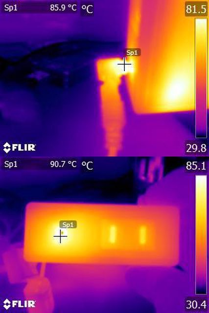 ▼DC插座輸出150W一小時後充電器本體的紅外線熱影像圖