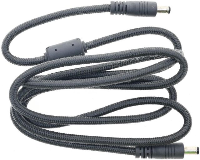 ▼DC輸出線,編織網包覆線路長度142公分,線路直徑5.3mm,其中一端有磁環