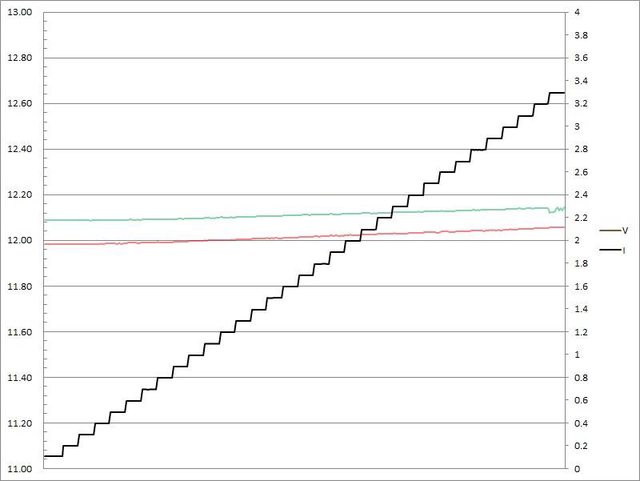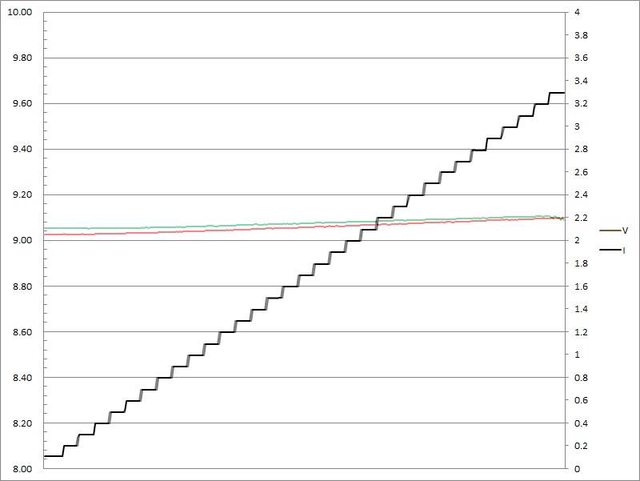 壓下降,輸出電流超過3.3A截止
