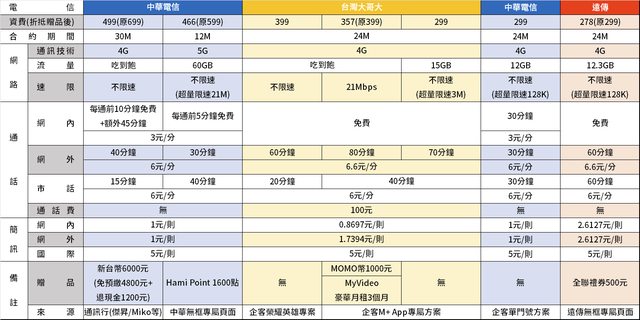 小魯我主要是在各價位找合約內容(主要是行動數據方面)相對優秀的方案