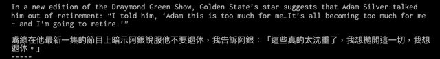 訴他同樣的事情。所以聽到Adam的說法,你知道,他在關心Draymond。