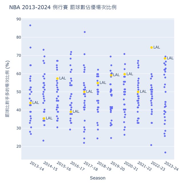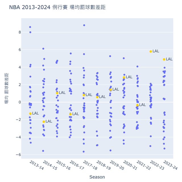 推 qo40330 : 之前也有數據 打湖人變跳投大隊 要吵幾次罰球 01/11 06:58