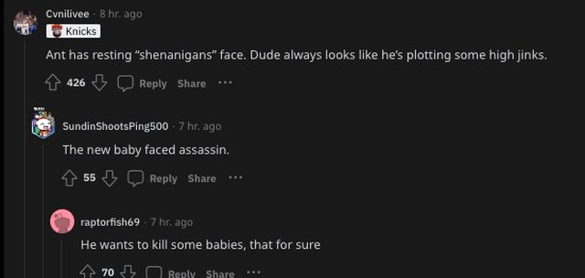 Ant has resting “shenanigans” face. Dude always looks like he’s plotting