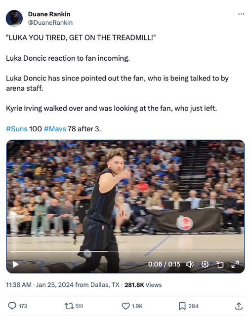 : Luka Doncic asked security to eject this Suns fan, who was sitting two rows