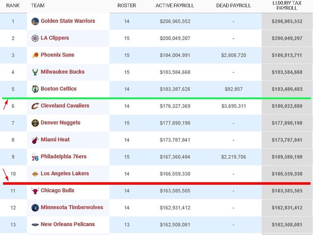 推 JayFans0610 : 我記得騎士的薪資在稅線以下幾M的樣子,沒有180M 01/27 15:11