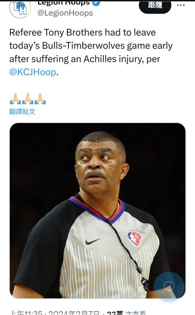 推 s925407 : 這個年紀阿基里斯腱受傷…保重…裁判也不容易 02/07 12:19