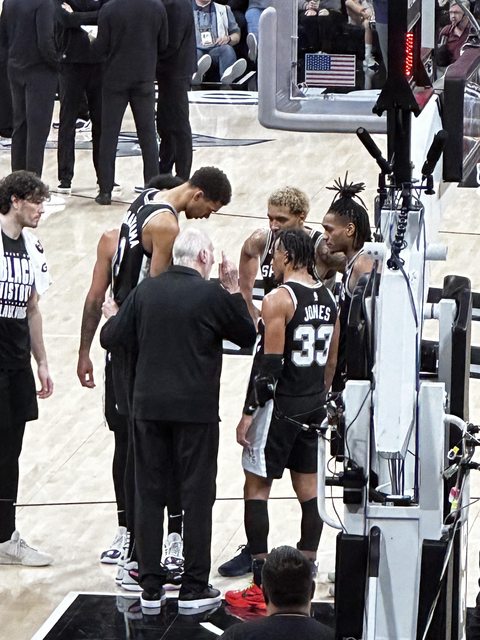 來就是要看怪物新秀文班亞馬!!以及一代傳奇老波波,現場看他真的很愜意,大部分戰術也是交給助教去安排