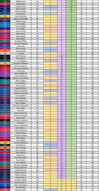 → EZ78 : Mikal Bridges全勤 但因為籃網被罰錢的輪休場只上了 02/16 06:14