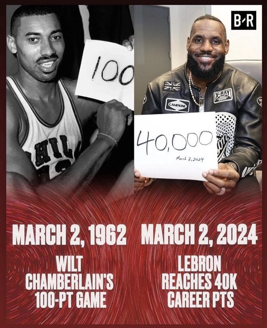 兩大傳奇球星都在3月2日(美國時間)締造了得分里程碑(另一位指張伯倫在1962年的單場