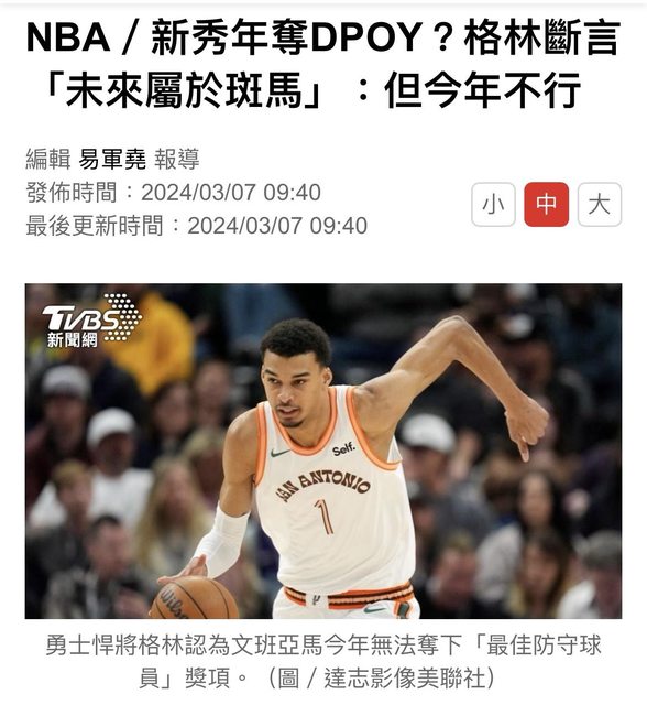 推 k7202001 : 看好斑馬生涯會拿10座阻攻王 5座DPOY 03/07 13:00