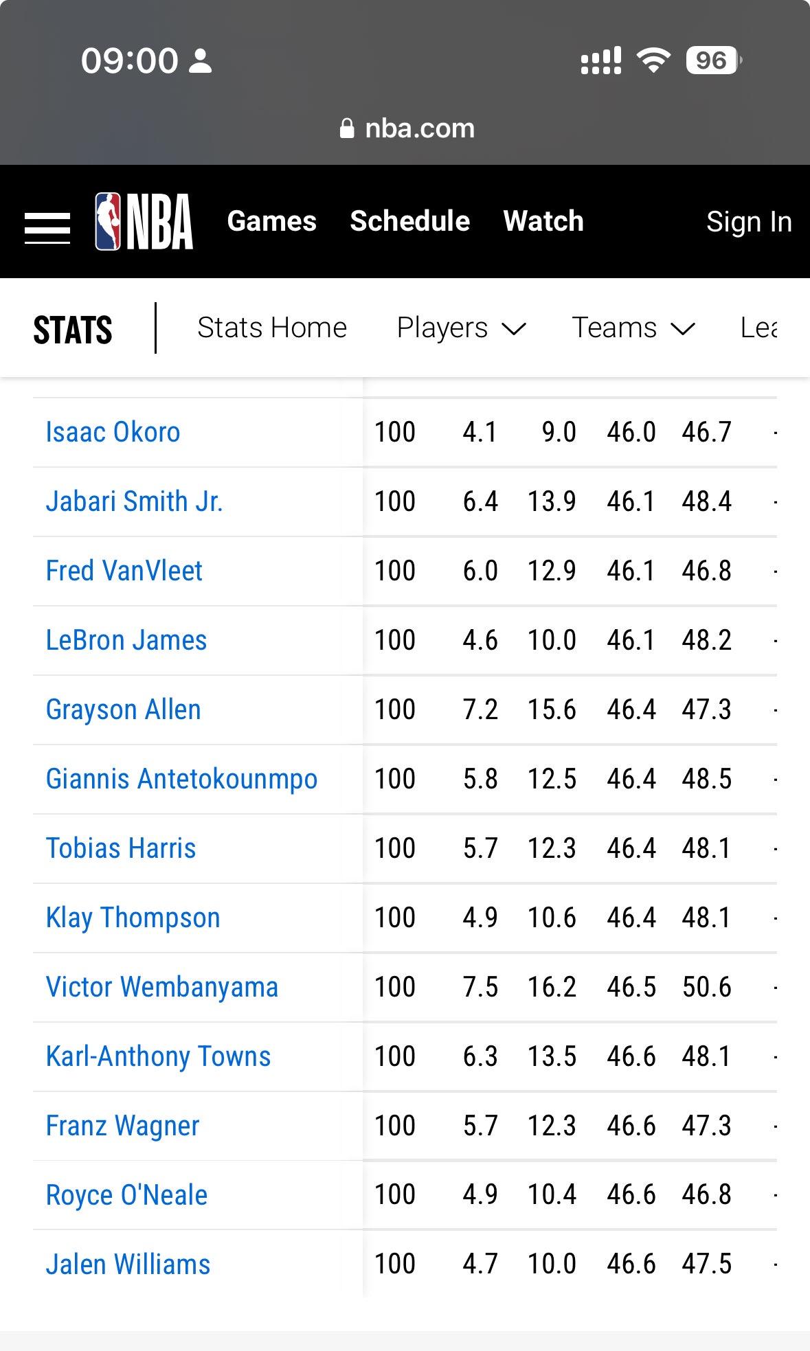 → Ydarvish : 官網數據 到今天3/12號 出賽55場以上的球員 姆斯排 03/12 11:52