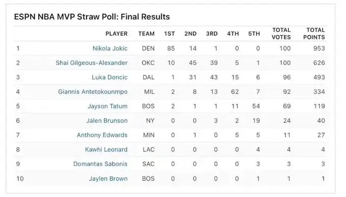 推 desion30 : ESPN模擬第三次投票4/3出來了,第一名小丑,第二名 04/05 18:26