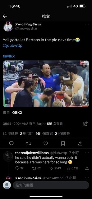 推 ya17120 : 記得JRE之前也有受到雷霆前隊友的愛戴 XD 04/08 17:04