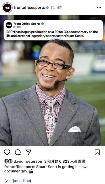 根據運動產業新聞品牌FOS今天在IG與X的報導:已過世的黑人名嘴-Stuart Scott,