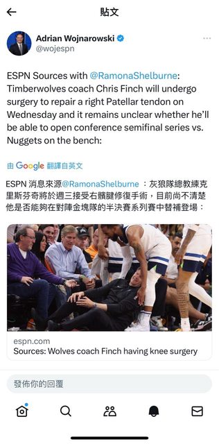 推 ricatii : 外電有說如果術後沒有併發症,芬奇將會出席客場 04/30 23:33