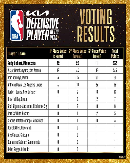 → keepstudying: 過往有菜鳥在DPOY比Wemby拿更多第一名票嗎? 05/08 09:21