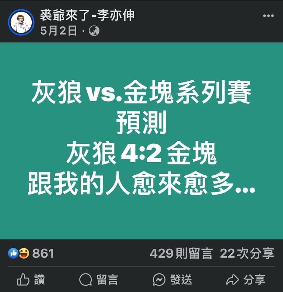 → benboy : 灰狼還沒輸 說不定下一場金塊大繞賽(?) 05/15 15:10