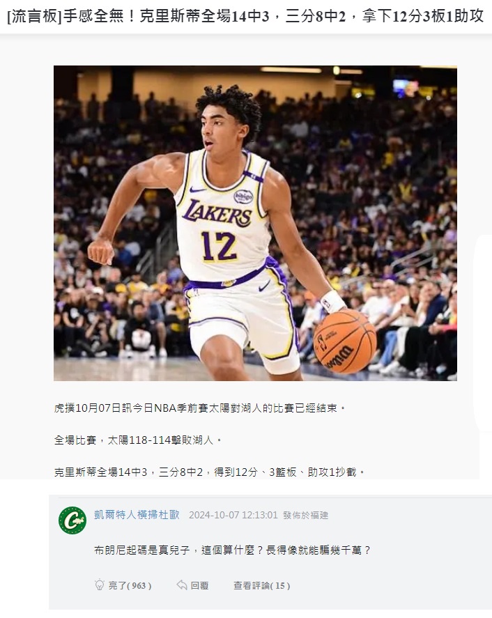 推 Ives20130 : 拜託湖人為了票房新球季記得都讓他先發 10/07 17:12
