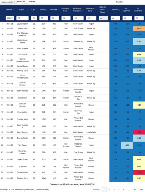 推 jay228 : LEBRON某些數據很怪 例如Towns防守是正的 DEPM -1.8 12/01 19:39