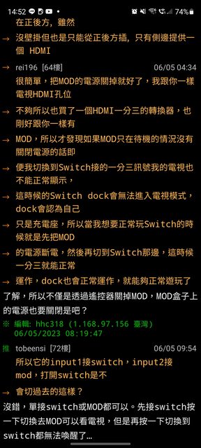 : 買了一個倍思Baseus的HDMI一對二/二對一切換器,切到MOD都很正常順利開啟,切到swit
