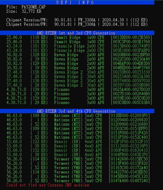 用Ryzen SMU Checker檢查最初發行的BIOS檔案