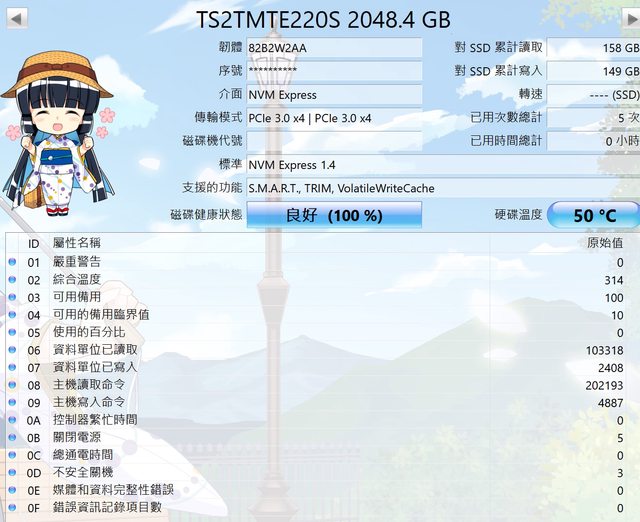 : 通電時間/寫入讀取統計等等
