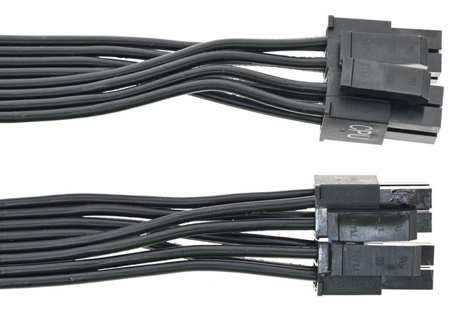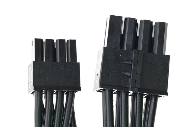 ▼12VHPWR模組化線路的2個Molex Micro-Fit 3.0 8P插頭連接處近照